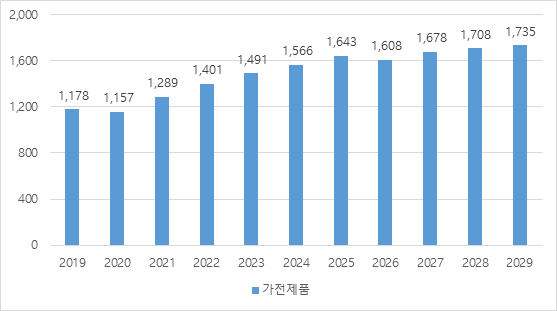 <2019~2029년 홍콩 가전제품 시장 규모>
