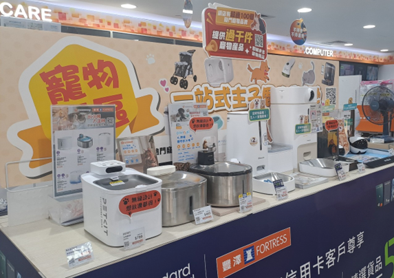 Euromonitor에 따르면, 2023년 기준 홍콩에는 약 30만4000마리의 반려견과 28만 마리의 반려묘가 사육되고 있다. 이는 2019년 홍콩 통계청 발표 대비 각각 37.5%, 52.1% 증가한 수치다. 홍콩의 반려동물 수가 급증함에 따라 관련 가전제품에 대한 수요도 빠르게 확대되고 있고, 최근에는 다양한 전자제품 브랜드가 반려동물용 가전제품을 적극적으로 출시하고 있다. 홍콩의 주요 가전제품 매장인 Fortress 등에서는 반려동물 가전제품 전용 구역을 별도로 마련할 정도로 관련 제품의 인기가 눈에 띄게 높아지고 있다.