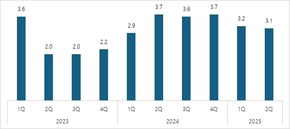 둘째, 고용 시장의 개선이다. 2025년 2분기 스페인의 고용인구 수는 2200만 명으로 역대 최고치를 경신했으며, 실업률도 2024년 2분기 11.3%에서 2025년 2분기 10.3%로 하락했다. 일자리 확대는 가계 소득을 안정시키고 소비 여력을 높이는 데 기여하고 있다.