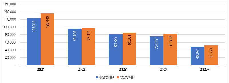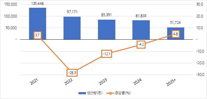 2025년에는 7월 누계 생산량이 전년동기대비 4.8% 증가하며 성장세로 전환하는 모습을 보였다.