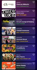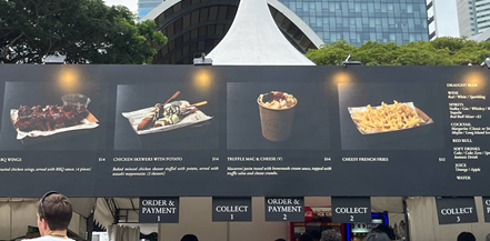 <F1 싱가포르 그랑프리 현장 식음료 메뉴 예시>