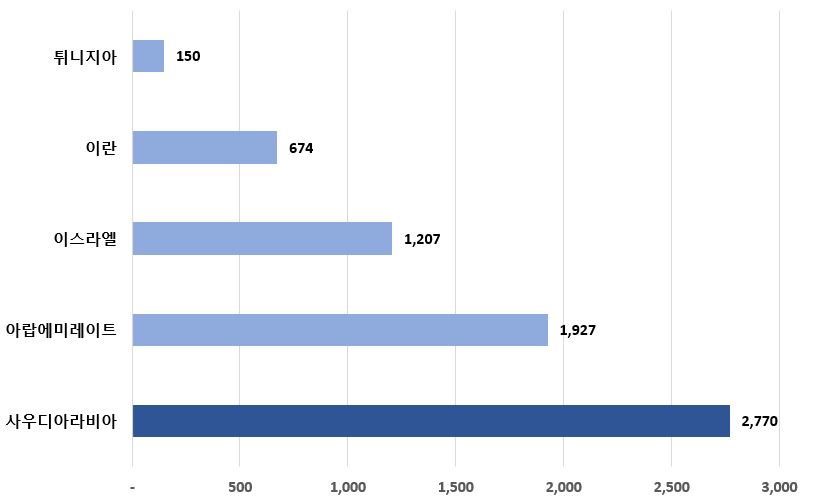 <사우디아라비아 유압브레이커 부품 주요 수입국 현황 (HS Code 843149 기준)>