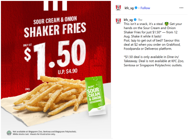이러한 구조는 다른 패스트푸드 브랜드에서도 찾아볼 수 있다. 예를 들어 KFC 싱가포르는 2025년 8월 현지 소비자에게 인기 있는 풍미인 Sour Cream & Onion Shaker Fries를 한정판으로 출시했다. 해당 메뉴는 싱가포르 1.50불을 추가 지불해 구매하는 방식으로 운영됐으며, 이를 통해 소비자에게 한정 맛을 직접 경험할 수 있는 선택권을 제공하는 동시에 판매 단가 제고 및 시장 테스트를 수행했다.