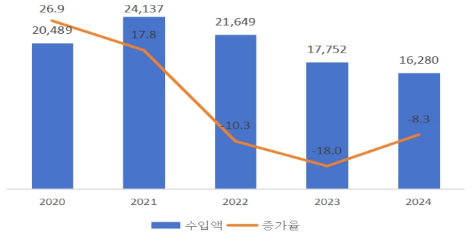 한국의 대중국 화장품 수출은 2021년 48억8000만 달러를 정점으로 2022년 35억1000만 달러, 2023년 27억8000만 달러, 2024년 25억 달러로 3년간 50% 가까이 줄어들었다.