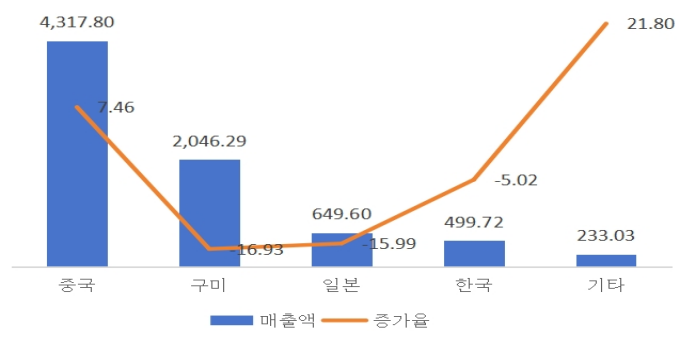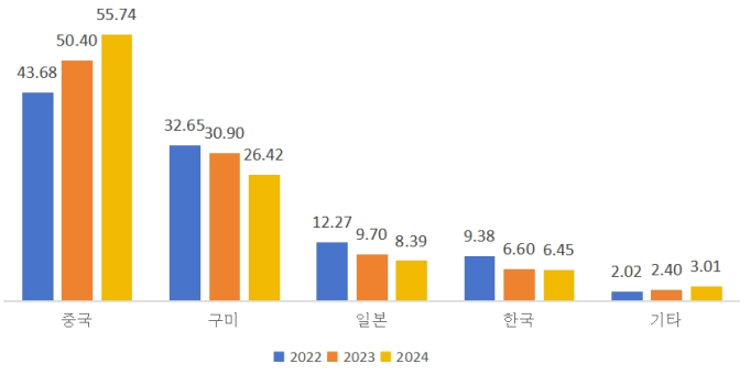 <2024년 중국 화장품 시장 국가별 매출 현황>