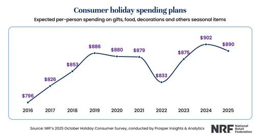 전미소매협회, 2025년 연말 쇼핑 평균 지출액 1.3% 소폭 감소 예상