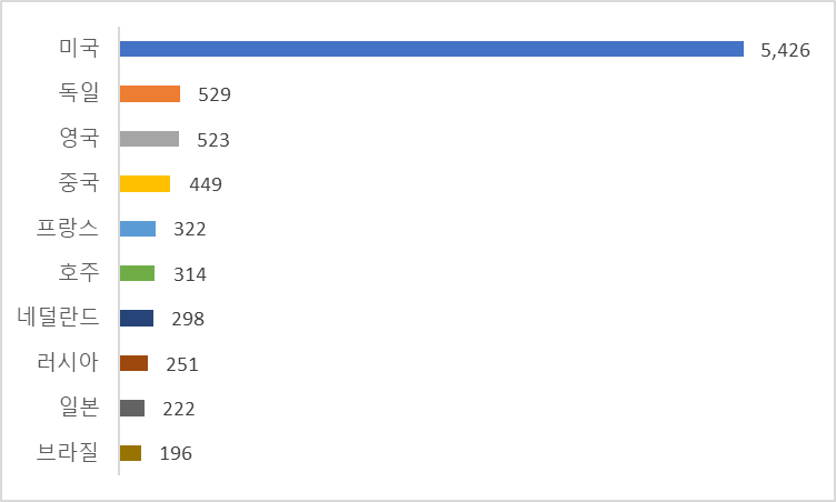 <2025년 3월 기준 국가별 데이터센터 수 TOP10 국가>