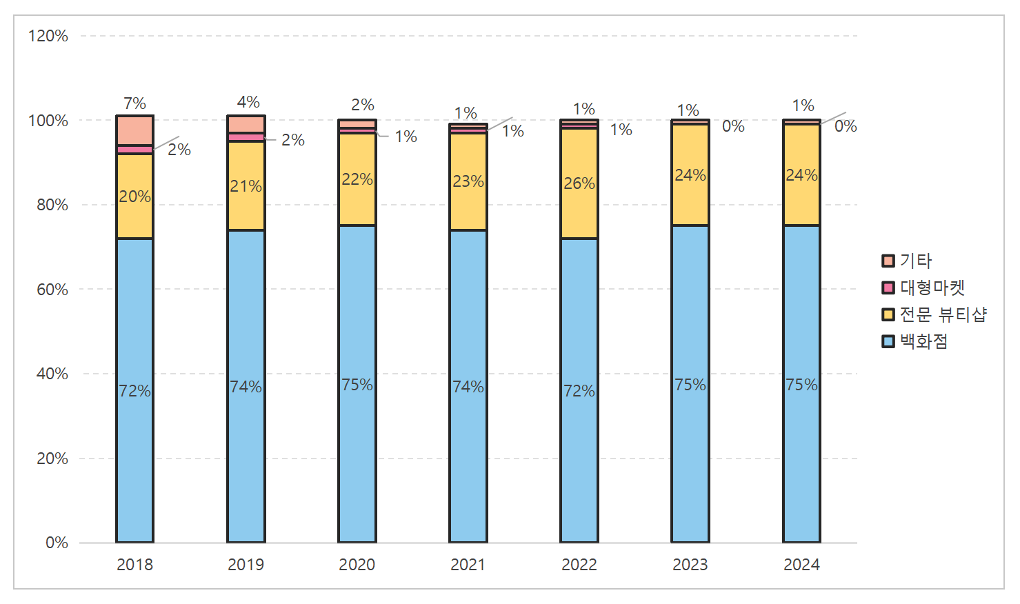 중국 향수시장은 낮은 침투율과 높은 성장률, 그리고 Z세대를 중심으로 한 소비 패러다임의 변화가 맞물려 새로운 기회의 장을 열고 있다. 국제 럭셔리 브랜드의 견고한 지배력과 로컬 브랜드의 거센 도전 속에서도 향후 중국 소비자들의 향수에 대한 인식 변화에 따라 안정적인 성장세가 계속될 것으로 예상된다. 과거 K-뷰티 붐을 타고 한국 화장품은 중국 시장에서 높은 인기를 누렸으나, 향수 카테고리에서는 상대적으로 약세를 보여왔다. 그러나 2024년 한국의 향수 수입이 전년 대비 33.3% 증가한 점은 새로운 기회가 형성되고 있음을 시사한다.
