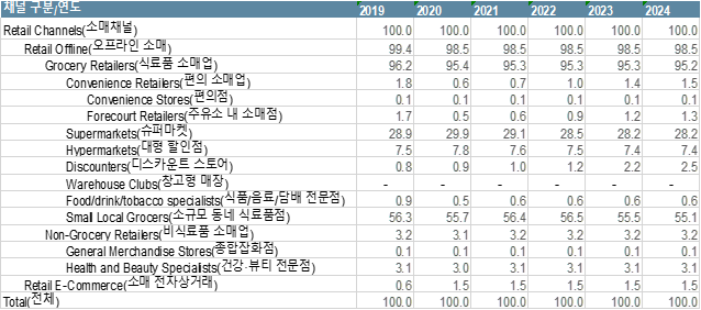 <에콰도르 내 주요 유통채널별 비중(Soft Drinks)>