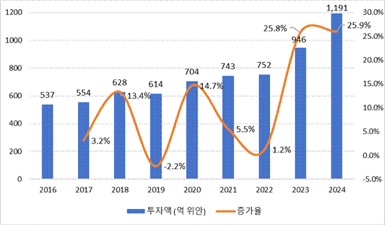 연안에 집중되어 있던 산업이 중서부로 이전하고, 주요 내륙 수로 및 항구 업그레이드 공사 프로젝트가 잇따라 착공됨에 따라 중국 내륙 수운 건설 투자 규모가 지속적으로 증가하고 있다. 2024년 중국은 내륙 수로 고정자산에 전년 대비 25.9% 증가한 1191억 위안을(약 24조 원) 투자했다.