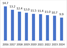 중국 국무원이 발표한 데이터에 따르면, 2024년 중국의 고등급*(3급 이상) 내륙 수로 길이는 1만6000㎞에 달하며, 이는 2012년의 1.7배 수준이다. 내륙에 억 톤 규모의 대형 항구는 23개로, 2012년의 2.3배 수준이다. 내륙 수로 화물 운송량은 49억5000만 톤으로, 2012년의 2.2배 수준이다. 새로 건조된 선박의 평균 적재량은 1790톤으로, 2012년의 2.6배에 달한다.