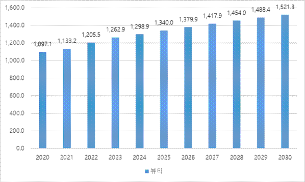<2020~2030년 홍콩 뷰티 시장 매출 추이>