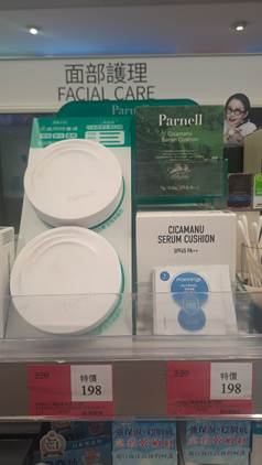 < 홍콩의 주요 드럭스토어인 Mannings 마온산(Ma On Shan) 지점에서 판매되는 Parnell의 Cicamanu Serum Cushion>