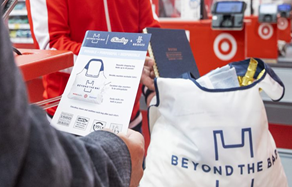 타깃은 ESG를 소비자 경험과 결합하는 방식을 선택하고 있다. 2025년까지 자체 브랜드 상품의 플라스틱 포장재를 20% 감축하고, 매장 입구에 설치된 리사이클 스테이션을 통해 고객이 화장품 용기·비닐백 등을 직접 반납할 수 있게 했다. 매장 외부에는 주차장 캐노피 형태의 태양광 패널을 설치해, 주간에는 매장 운영 전력을 자체 생산하고 고객에게는 그늘진 주차 공간을 제공한다. 매장 내부 조명과 디스플레이는 재활용 소재로 교체하고, 재사용 가능한 쇼핑백 시스템을 도입하는 등 소비자 참여형 순환 경제(circular economy)가 핵심 요소로 자리하고 있다.<매장 앞 태양광 패널·주차 그늘 시설 / 재활용 백 ‘Beyond the Bag’ 설명서>