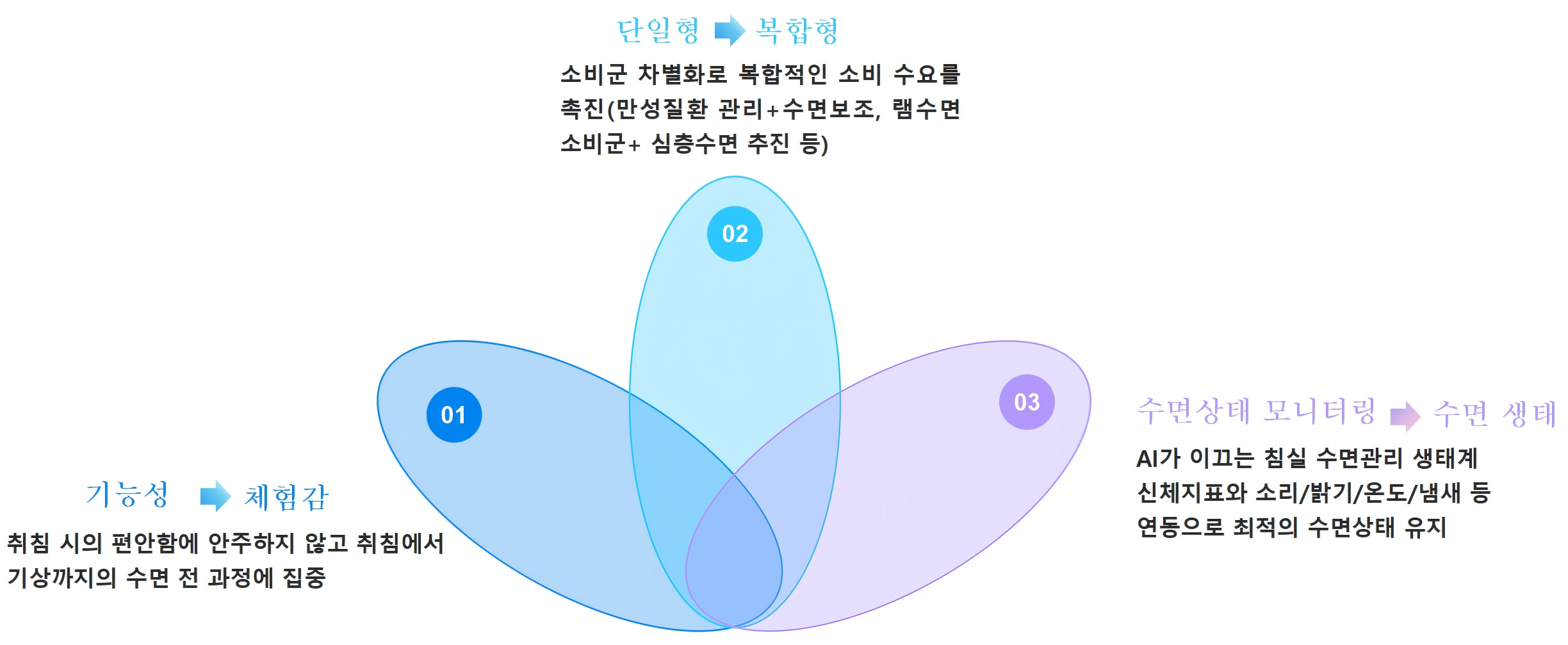 중국 수면경제 시장은 폭발적으로 성장하고 있는데, 중국수면연구회에서 발표한 <중국 수면 연구보고 2025>에 따르면, 중국 수면경제 시장규모는 2016년 2616억 위안에서 2023년 4956억 위안으로 빠르게 성장했으며, 2027년에는 6587억 위안에 이를 것으로 전망된다. 이는 단순한 침구류 시장을 넘어, 기술이 접목된 스마트 수면 보조기기, 기능성 소재, 수면 유도 애플리케이션, 아로마 테라피 제품 등 다각화된 시장의 성장을 의미한다.