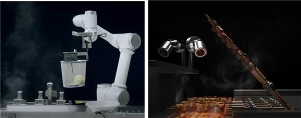 <대만 소프트스타사가 선보인 조리 로봇(좌: 라멘 조리 로봇, 우: 꼬치구이 로봇>