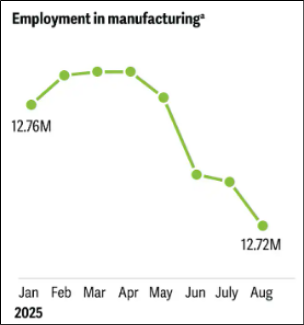 <미국 제조업 인건비지수(2024 Q1~2025 Q2) 및 제조업 고용 추이(2025.1~8)>