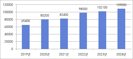 베트남 공작기계 시장규모는 2019년 약 6000만 달러 수준이던 베트남 공작기계 매출은 2024년 약 1억 달러까지 늘며 약 67% 증가했으며, 연평균으로는 약 10%대 성장률을 기록하고 있다.