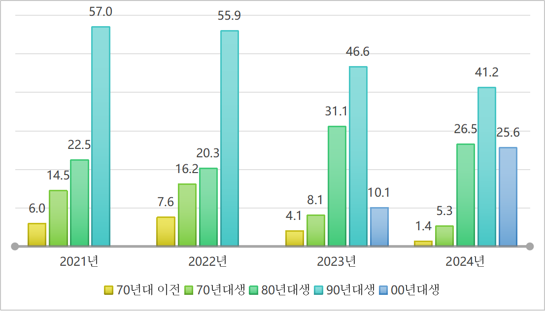 중국 캣 이코노미의 핵심 동력은 ‘젊은 집사’들이다. 데이터 분석에 따르면, 2024년 반려묘 양육 인구 중 90년대생의 비중은 41.2%에 달하며, 2000년대생과 80년대생이 각각 25% 내외를 차지한다. 즉, 1995년 이후 출생한 Z세대가 전체 시장의 과반을 점유하며 트렌드를 주도하고 있다.