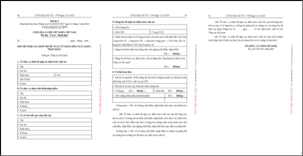 특히 최근 2025년 4월 29일 베트남 세관총국 결정 제467/QD-CHQ호를 통해 사전원산지결정 제도의 내부 행정절차가 세부적으로 명문화됐다. 8월 25일에는 재무부 결정 제2902/QD-BTC호에 따라 국가 행정절차 데이터베이스에 공식 등재됐다. 이를 통해 기업이 베트남 공공서비스 포털을 통해 직접 사전원산지결정 신청이 가능한 공식 행정절차 체계로 전환됐다.