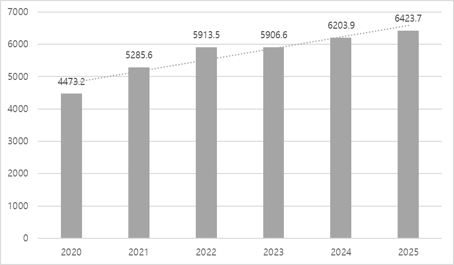 사우디아라비아의 의료기기 시장은 최근 몇 년간 안정적인 성장 궤도에 올라섰다. 글로벌 리서치 회사인 Statista에 따르면, 2024년 기준 사우디 의료기기 시장 규모는 약 62억400만 달러였으며, 2025년에는 64억2300만 달러에 이를 것으로 예상된다. 2025년부터 2032년까지 연평균 성장률(CAGR)은 5.1%로 예측되며, 2032년 시장 규모는 약 90억3000만 달러에 달할 것으로 전망된다.