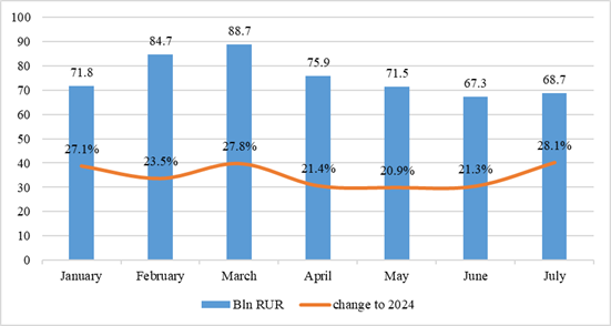 <2025년 1~7월 러시아 치과 시장규모 및 성장률>