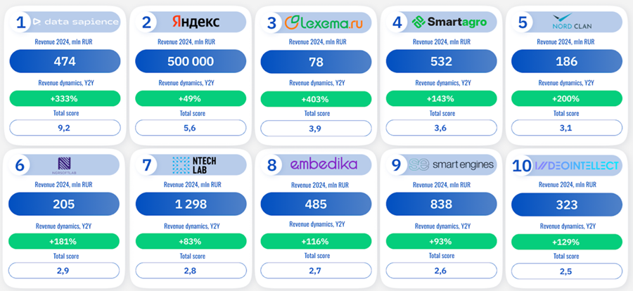 <가장 빨리 성장하는 러시아 10대 AI 기업>