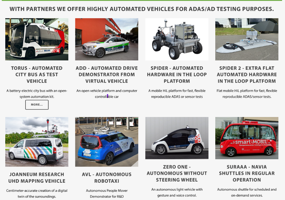 도시, 교외, 산악 도로, 고속도로(A2/A9), 터널 등 오스트리아의 다양한 실제 도로 환경을 모두 포함하는 광범위한 테스트 환경을 제공하며, 눈, 비, 저조도, 눈부심과 같은 지역의 특수 기후 조건에서도 주행 실증이 가능하다. 또한 모든 단계의 ADAS 및 자율주행 기술 테스트를 지원한다. 모바일 센서와 고정형 인프라 센서를 융합한 고도화된 데이터 수집 체계, 시뮬레이션부터 HIL/SIL, 실제 도로 주행에 이르는 일관성 있는 테스트 파이프라인을 보유하고 있다.