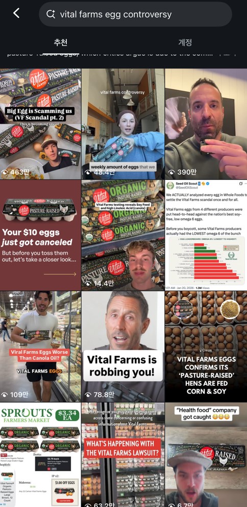 논란은 1월 중순 한 인플루언서가 SNS에 올린 영상이 공개되며 본격적으로 불거졌다. 해당 영상은 업로드 일주일 만에 수백만 조회수를 기록하며 소셜미디어에서 빠르게 확산되었고, 이후 Parade, The Kitchn, Men’s journal 등 라이프스타일 및 웰니스 매체들이 관련 기사를 연이어 보도하며 이슈가 확대됐다. 일부 소비자들은 보이콧을 외치며 분노를 표출했고, 바이탈 팜스의 주가(VITL)는 1월 20일 하루 만에 6% 급락하는 등 시장에 즉각적인 영향을 미쳤다. 유기농 방목형이라는 라벨은 더 이상 건강의 보증 수표가 될 수 없다는 사실이 밝혀지면서, 프리미엄 식품 시장은 혼란에 빠지게 된 것이다.