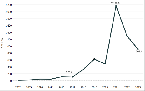 <2012-23년 호주의 정부 AI 관련 투자 금액>