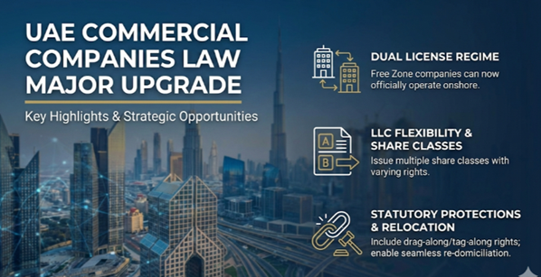 이러한 흐름 속에서 2025년 11월, UAE 정부는 신규 연방법(Federal Decree-Law No. 20 of 2025)을 통해 2021년 시행된 회사법 일부 조항의 개정을 알렸다. 개정안은 기업의 자본 구조 및 지분 설계, 주식 종류 발행 등과 관련된 유연성 확대를 골자로 한다.