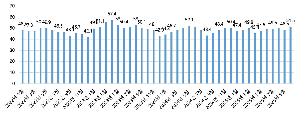 기업 평균 가동률은 71%로 상승했지만 업종별 회복 격차는 여전히 지속되고 있다. 국제 신용평가 기관 S&P Global이 발표한 보고서에 따르면, 미얀마 제조업은 10월까지 회복 흐름을 이어가며 제조업 구매관리자지수(PMI)가 4개월 연속으로 확장세로 진입하는 모습을 보였다.
