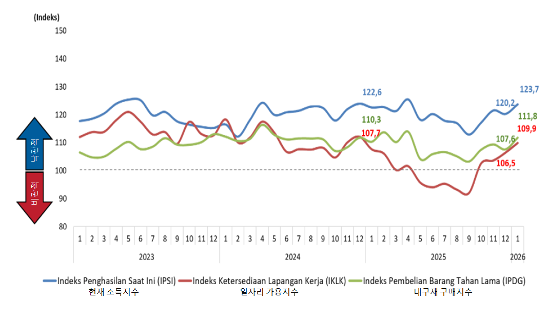 <인도네시아 항목별 소비자 심리 지표 추이 (2023~2026년 1월)>