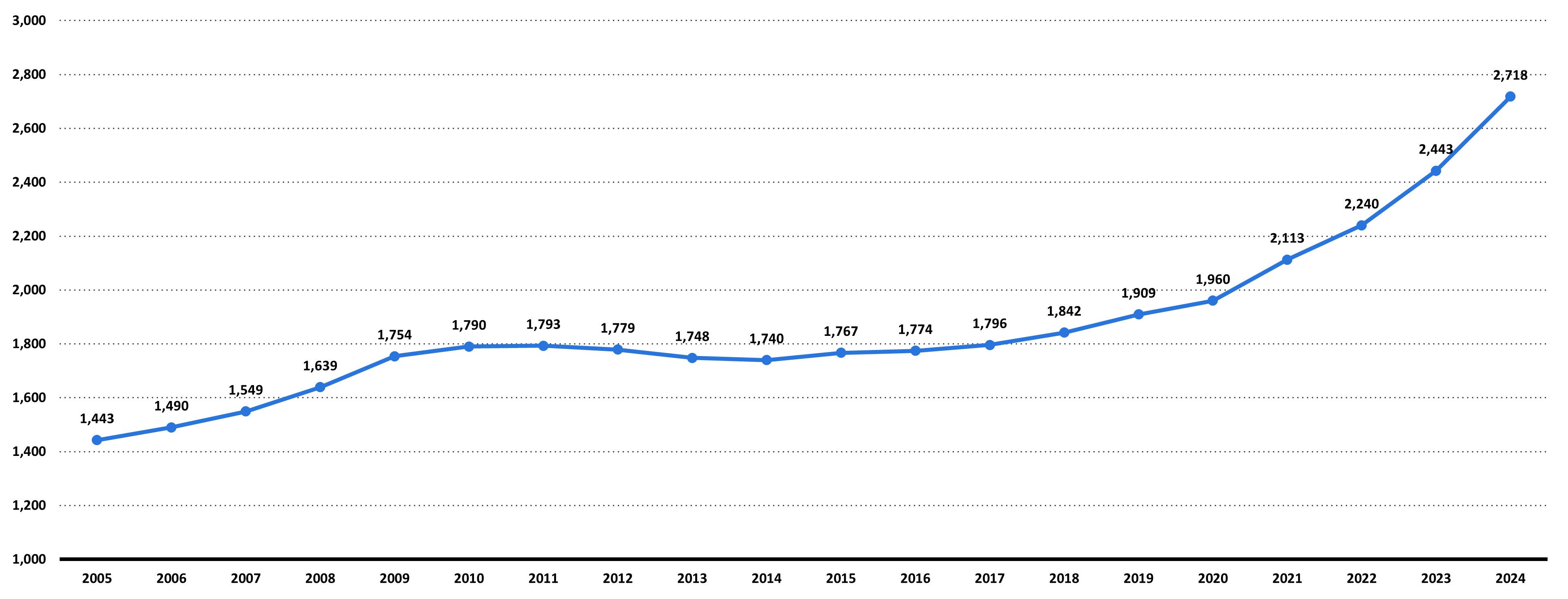 <전 세계 군사비 지출 규모(2005~2024)>