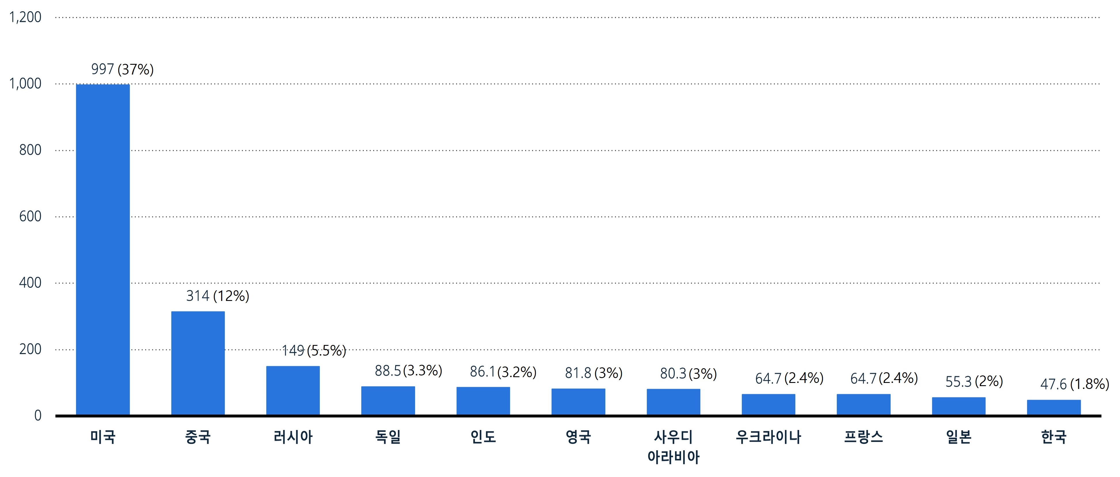 [자료: SIPRI/Statista 재인용(2025.4.)]