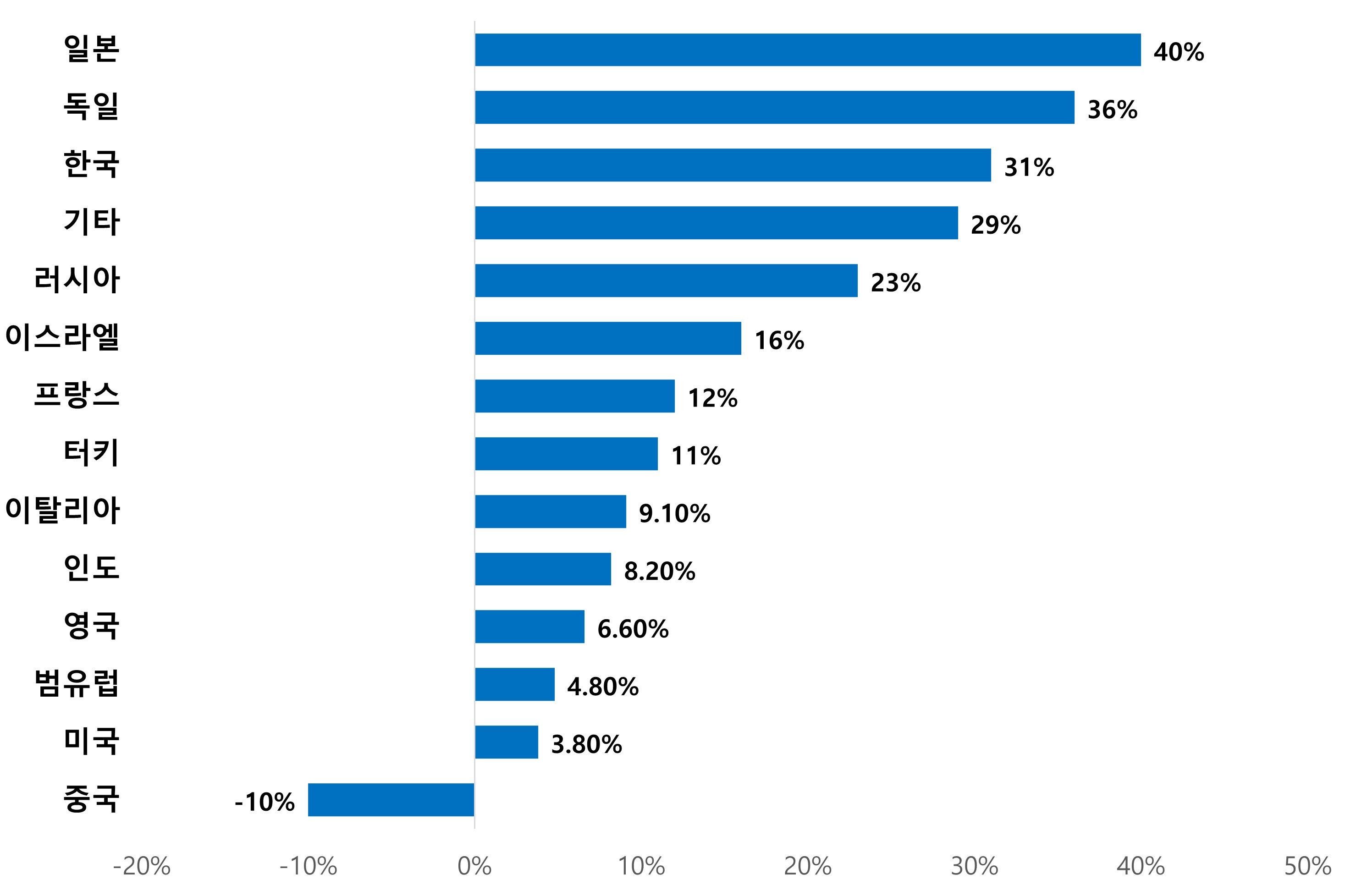<국가별 무기 매출 변화율(2023~2024)>