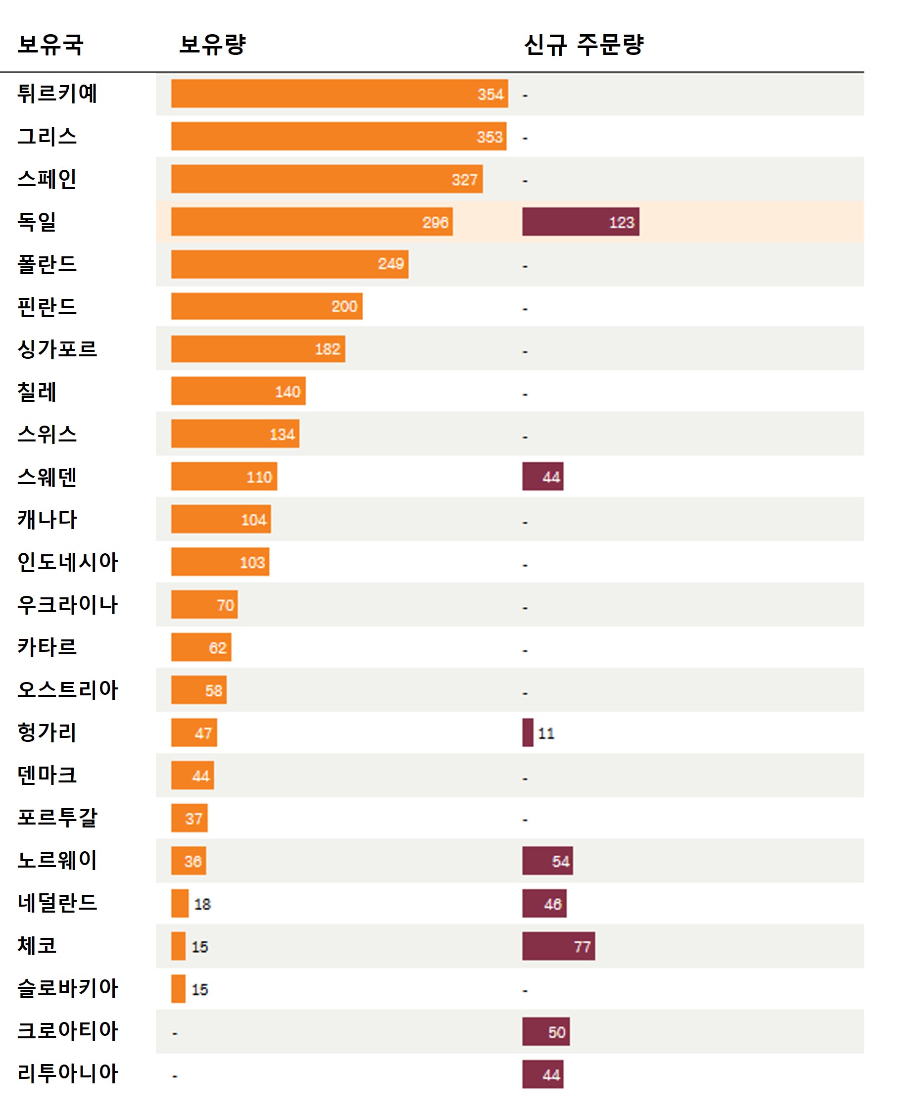 <독일 장갑차 Leopard 2 보유국과 주문량>
